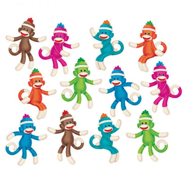 Make lessons and displays pop with accents that stand tall, deliver messages, and build student confidence in a variety of ways. Add critters and characters to celebrate successes. Students will take note! Precut and ready to use. Durable and reusable. 5 1/2″ – 6″ tall. 12 designs, 36 pieces. Mirror images are perfect for creating puppets and two-sided displays! Coordinates with Sock Monkeys Collection.