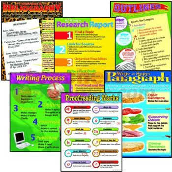 This six-chart pack for Grade 4 to Grade 6 includes: Writing a Research Report (T-38166), Proofreading Marks (T-38042), Outlines (T-38043), Write a Super Paragraph (T-38238), Writing a Bibliography (T-38239), and Writing Process (T-38127).