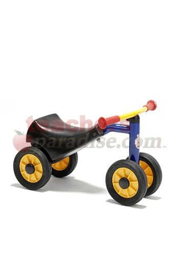 Push-bike for one person with double front wheel. Provides extra stability for children with difficulty in balancing. For the youngest members in the group. To be pushed along by the feet.