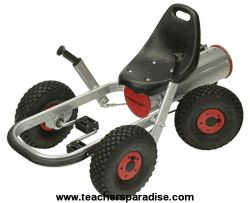 An awesome off-roader designed for the rough and tumble of any playground in the universe. The large rubber wheels with real ball bearings give the StarWheeler unrivalled driving and climbing characteristics. The pedal-powered StarWheeler is steered by grip handles. A fun vehicle that enhances children’s coordination through speed, thrills and challenges.