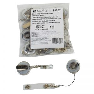 C-Line® Retracting ID Card Reels, Spring Clip, Clear, Pack of 12