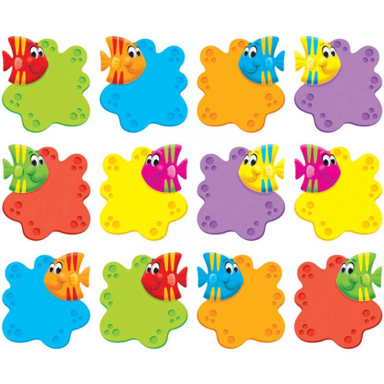 Energize spaces with a delightful fish design in 6 colors: blue, red, purple, green, orange, and yellow. Use accents to praise student work; practice letters of the alphabet, sight words, and parts of speech; and label lockers, cubbies, and desks. Endless possibilities! 3″ tall, precut & ready to use. Durable & reusable. Coordinates with the … Read more