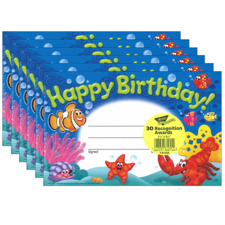TREND Happy Birthday! Sea Buddies™ Recognition Awards, 30 Per Pack, 6 Packs